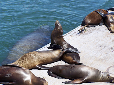 Anyway, we found a nice restaurant and eat our lunch overlooking the beautiful Monterey Bay, the calm side of the wharf. Mike notice a sign offering harbor cruises, that sounded like fun. The cruise was very nice except for a few loud, obnoxious beer drinking men. We saw cute little sea otters and sea lions. We saw lots of sail boats and two light houses. It was very calming to be out on the ocean, that is as long as we stayed away from the loud